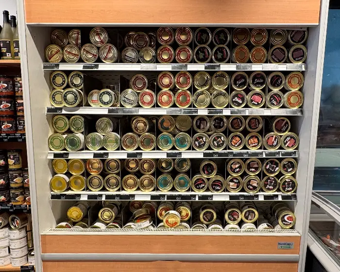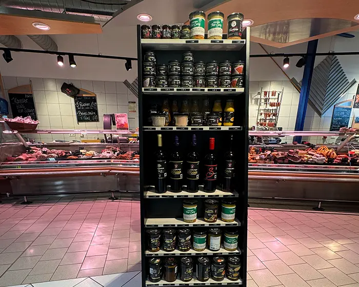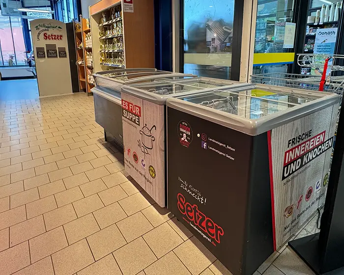 (1) mit Farbstoff, (2) mit Phosphat, (3) geschwefelt, (4) mit Süßungsmittel, (5) mit Konservierungsstoff, (6) mit Nitritpökelsalz, (7) mit Geschmacksverstärker